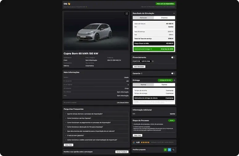 - Entender rapidamente quanto custa importar um veículo para Portugal.